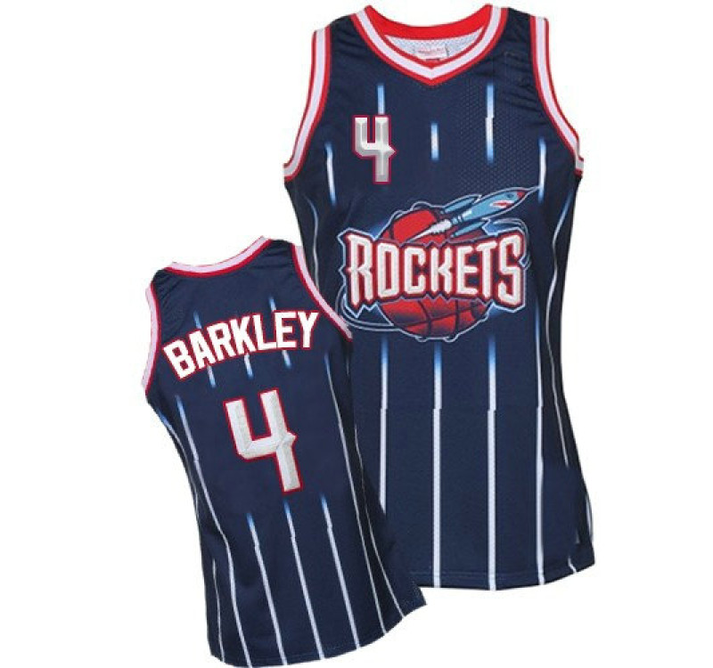- Charles Barkley Rockets #4 Hardwood Classics Swingman Navy Blue Stripe Jersey