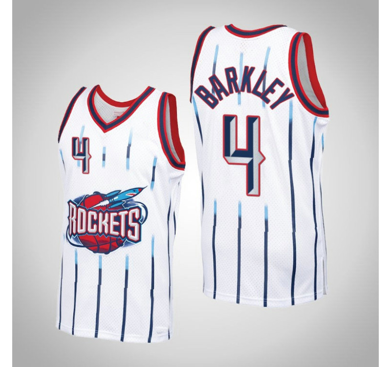 - Men's Rockets Charles Barkley #4 White Hardwood Classics Jersey